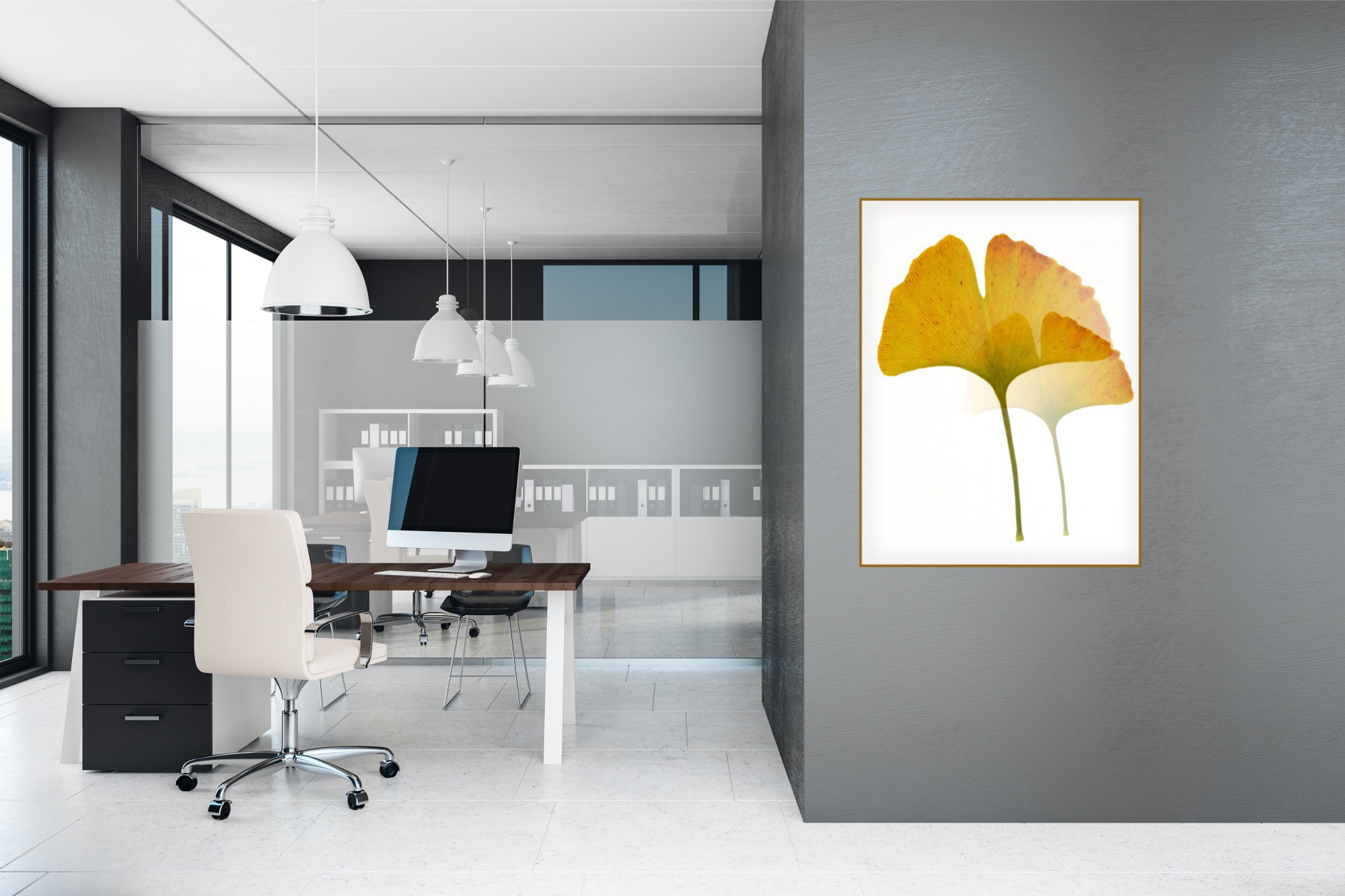 Art for work spaces must be either natural and realistic or it can be natural with a contemporary look and feel. Both have the same positive effect.